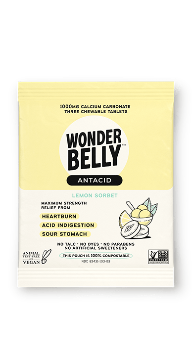 Wonderbelly Antacid’s active ingredient is calcium carbonate. Calcium carbonate is an antacid that can relieve heartburn, acid indigestion, sour stomach, and upset stomach associated with these symptoms and is found in many of the leading brands on the market such as Tums, Rolaids, and Alka-Seltzer. If you are experiencing other symptoms or your symptoms persist for more than two weeks, you should consult with your doctor or pharmacist to determine the appropriate treatment option.