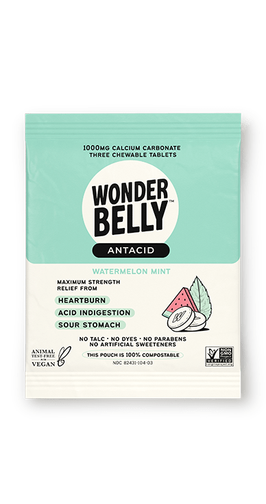 Wonderbelly Antacid’s active ingredient is calcium carbonate. Calcium carbonate is an antacid that can relieve heartburn, acid indigestion, sour stomach, and upset stomach associated with these symptoms and is found in many of the leading brands on the market such as Tums, Rolaids, and Alka-Seltzer. If you are experiencing other symptoms or your symptoms persist for more than two weeks, you should consult with your doctor or pharmacist to determine the appropriate treatment option.